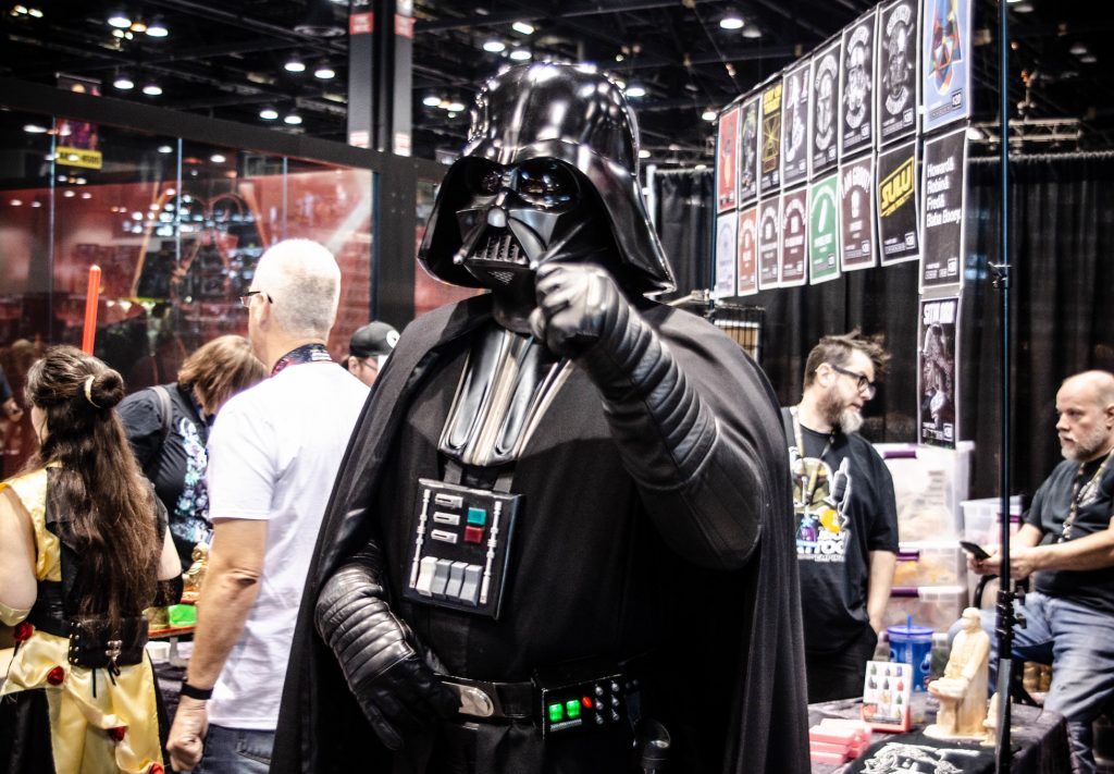Drugi svet se prične že ob vhodu, kjer stojita x-wing in TIE-fighter v naravni velikosti, nakar se čarobnost le še stopnjuje. Ob trobljenju Imperijskega marša vkoraka vod belih jurišnikov, na parketu se z značilnim zvokom žarosabljajo sithi in jediji ter Leie v štrikcih se fotografirajo ob sluzavcu Jabbi. Na odru čvekata J.J. Abrams in Daisy Ridler, prišleki z vseh koncev ozvezdja igrajo dejarik ter za tamale je organizirana šola padawanov. Nekje je razstava poslikanih droidov, predstavljajo se raznotera galaktična društva in potrpežljivci čakajo v vrsti za drag podpis igralca. Celotno dogajanje pa je prepredeno s štanti religiozne robe. Dobi se značko za groš, plišastega porga, zmečkano Vaderjevo čelado za poldrugega tisočaka ali ogljikovega Hana za sedem njih. V povprečju odrasel obiskovalec tam pusti jurja.